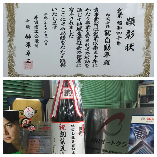 この度『巽自動車』は創業50年(商工会議所登録より)を迎え、半田商工会議所様より表彰を受けました。とても栄誉なことだとおもます。
