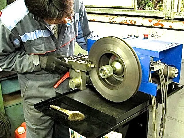 ディスクローターの研磨機です。目に見えるサビや傷はもちろんのことディスク自体の歪みも解消できます。消耗品ですので新品交換が当たり前ですが、当店では使えるものに関しては直して使用する。