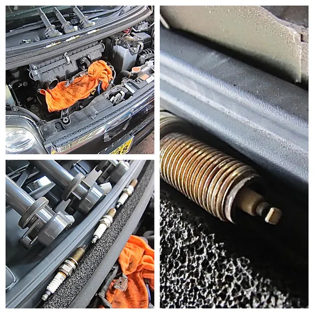 今回のご依頼はダイハツムーヴのエンジン不調。「エンジンをかけるとガタガタする?アクセルを踏んでも走らない?」と言うことでした。早速引き取りに行き(半田市内)店に運んできました。調べていくと「プラグの劣化」が原因と判明。プラグ交換・スロットルの清掃等を実施。見事に復活です!!