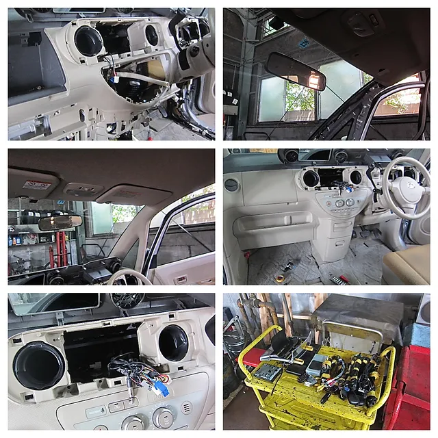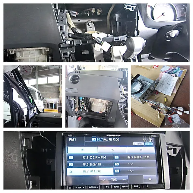 業者様からの依頼で「ナビ載せ替え」が発生。トヨタポルテからアイシスへの載せ替えです。ナビ以外にも様々なAV機器が付いており予想以上に時間がかかってしまいました。今日は一旦取り外しだけなので後日取り付けをします。