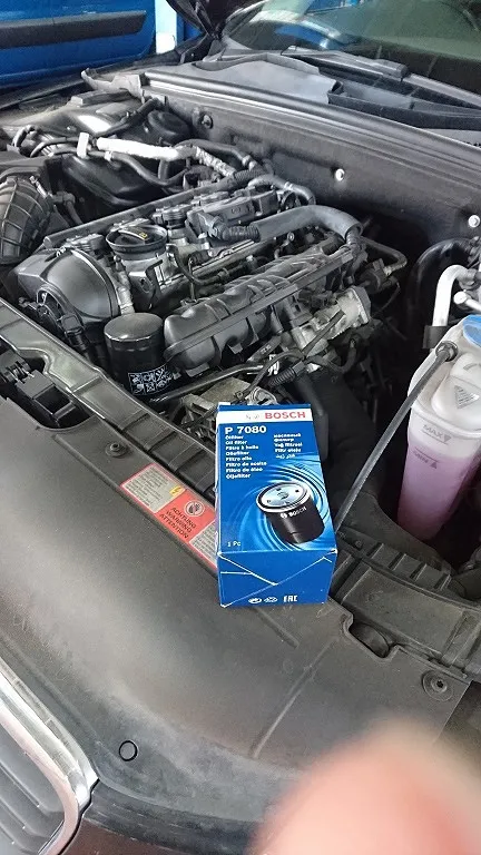半田市 アウディA4アバント エンジンオイル、オイルフィルター交換作業 Bosch Car Service 巽自動車