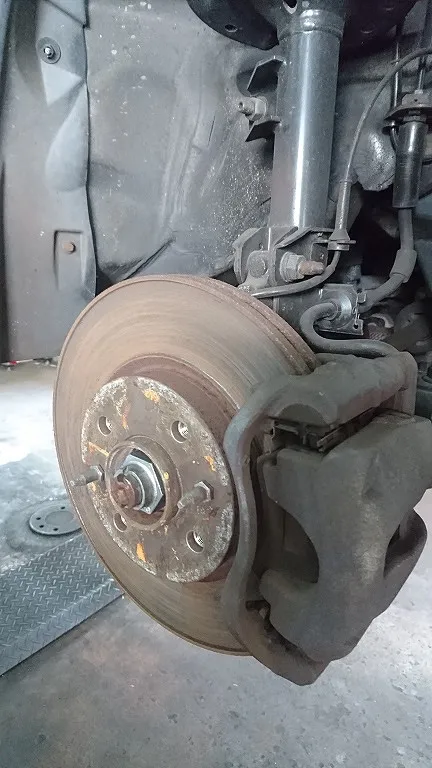トヨタ・プリウスα(ZVW41)ブレーキ整備作業 ブレーキディスクローター交換&研磨作業です。
