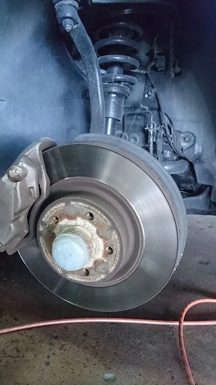 トヨタ・プリウスα(ZVW41)ブレーキ整備作業 ブレーキディスクローター交換&研磨作業です。