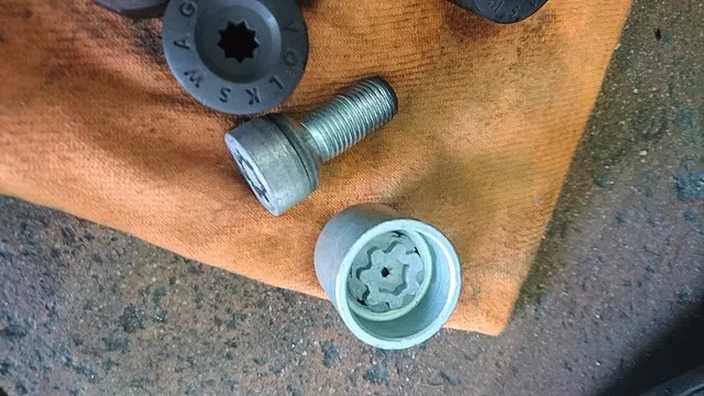 まずはタイヤ取外しからで盗難防止ソケットが有りますので設置状態でハンドツールで緩めます。