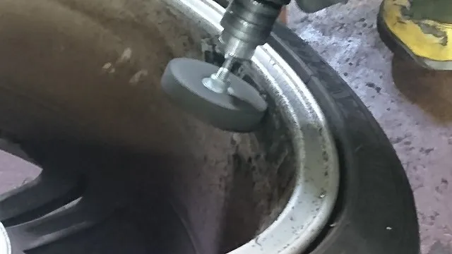 タイヤ取外し後、ホイール裏のウェイトバランスを糊跡まで綺麗に致します。