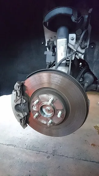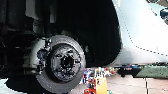 トヨタ・プリウスα(ZVW41)ブレーキ整備作業 ブレーキディスクローター交換&研磨作業です。