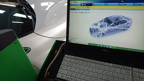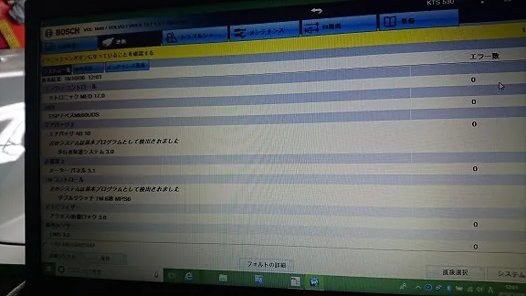 ボッシュ製自動車総合診断機KTSにて車両コンピューター内部を点検&リセット作業。