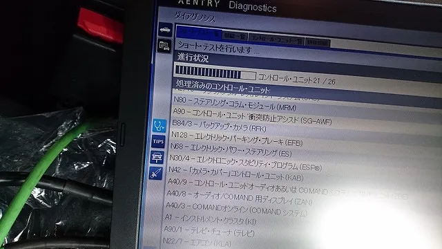 MB診断機Xentry診断機によるショートテスト。
