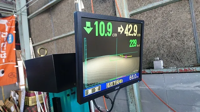 左側もやや右を向いており、調整にて保安基準に満たす範囲に収まりました。