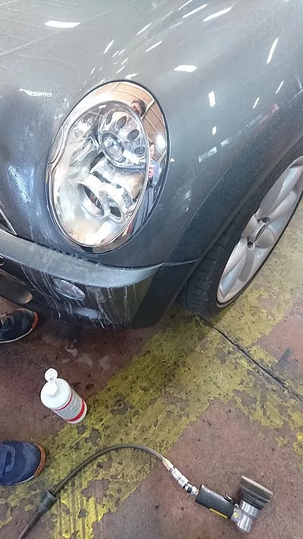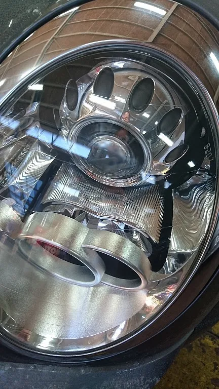 初めてのご入庫のお車でしたがヘッドランプレンズが曇りが著しかったのでみかねて、ヘッドランプレンズクリーニング施工(無料サービス)