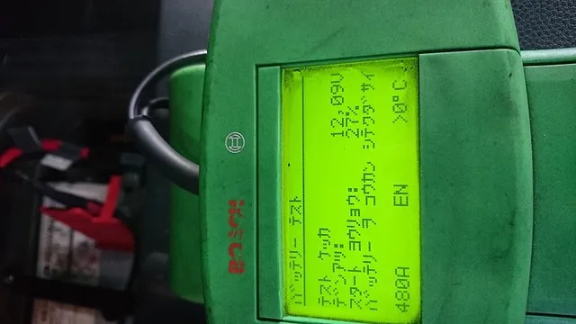早速、ボッシュバッテリーCCAテスターにて点検。