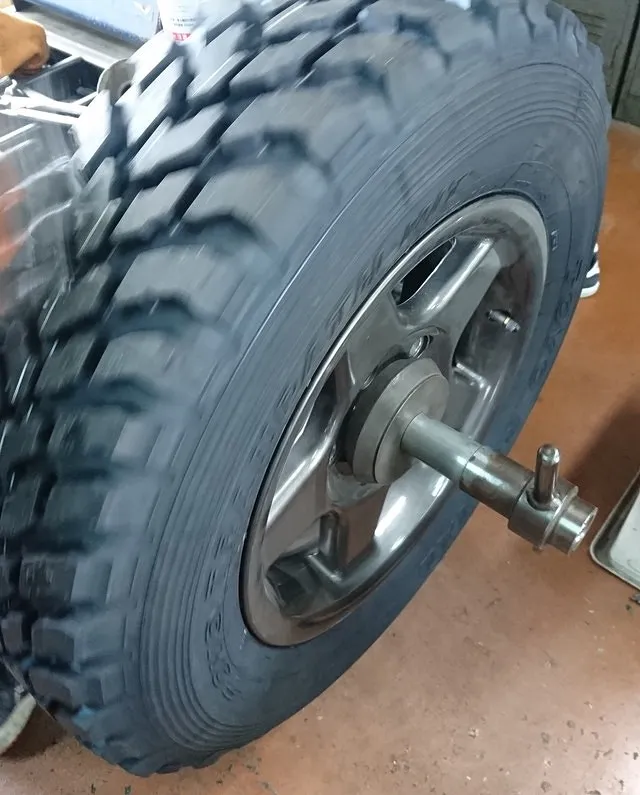 専用バランス調整器でホイールバランスを取り直します。
