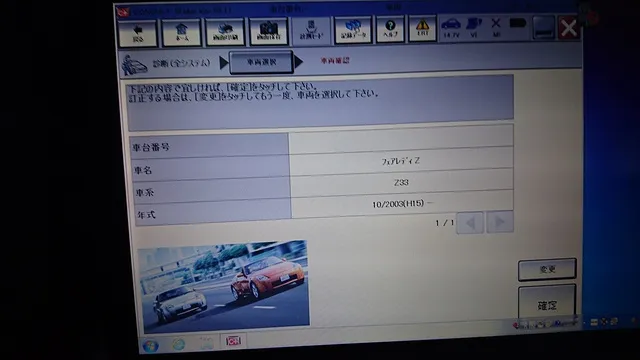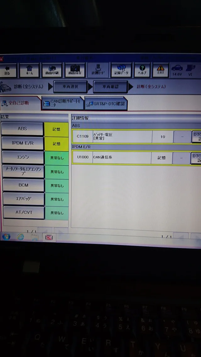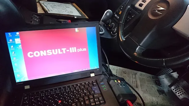 日産専用診断機コンサルト3+にて車両診断を進めます。