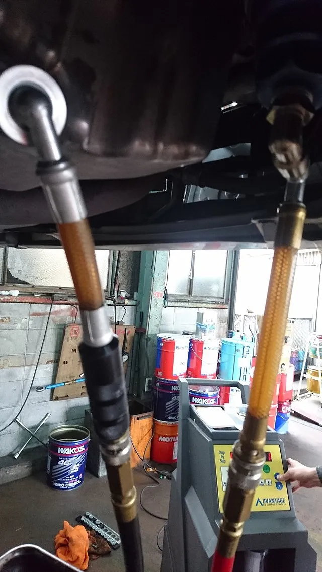 専用洗浄用の鉱物溶剤をエンジン内部を循環させ汚れのスラッジ等を通常のオイル交換では抜けきれない汚れを輩出させます。