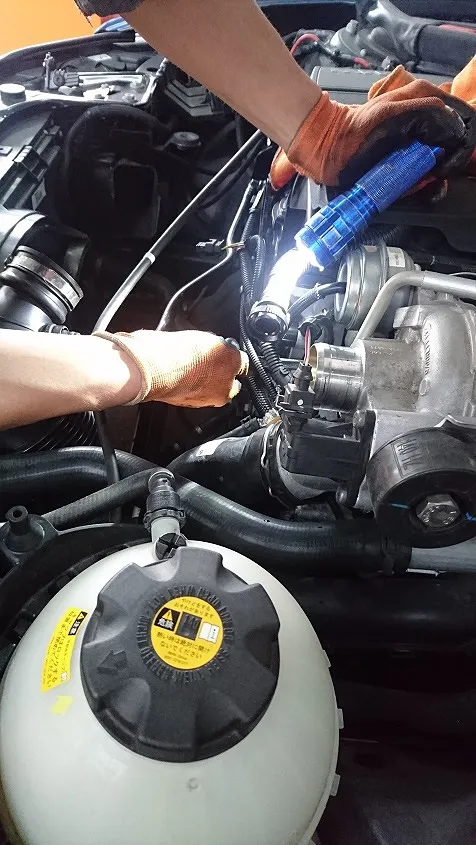 半田市 BMW120i 冷却水漏れ点検修理。 Bosch Car Service 巽自動車