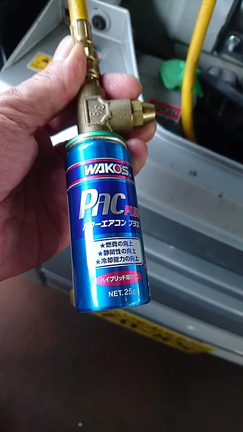 今回はWAKOS(ワコーズ)のエアコン+を追加充填いたしております。
