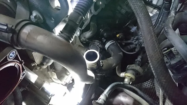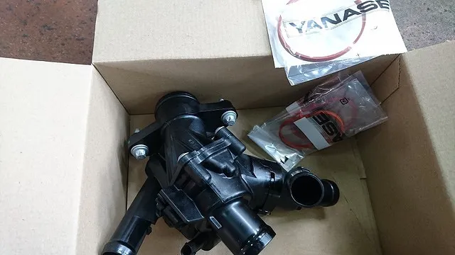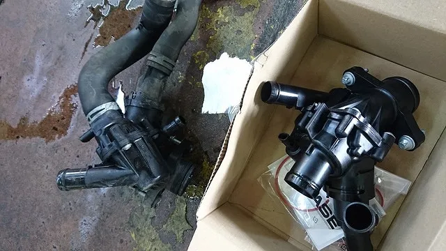 VW・ゴルフGTI エンジンチェックランプ点灯、サーモスタット&ハウジングケース、センサーASSY交換作業