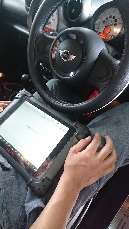 診断機によりブレーキパッド交換、エンジンオイル交換したことを登録設定を行います。