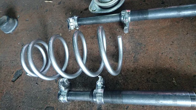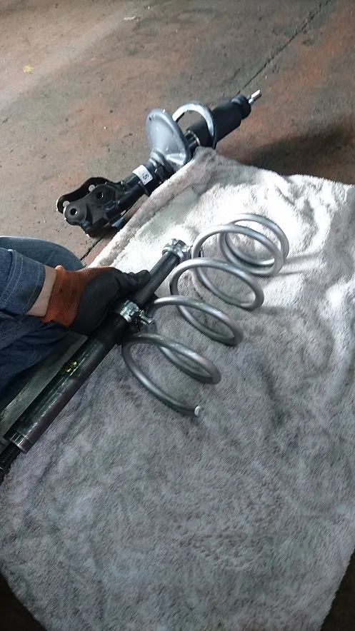 まずはフロントからアブソバー、スプリングを脱着、分解、組み換えを行います。