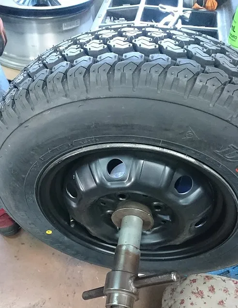 お持ち込み頂いてたオフロードパターンのタイヤ&ホイールでのバランスが取られていないとのことで当社で再度バンス点検調整を行いました。