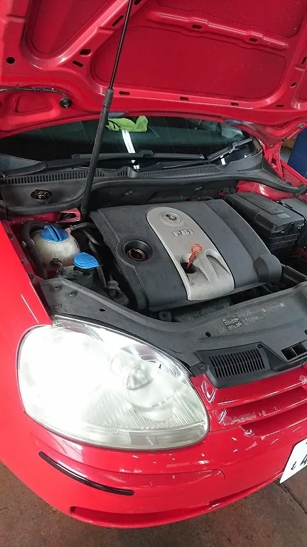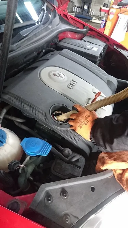 VW系はオイル充填はゆっくり入れてげないと吹きこぼれるので注意が必要です。