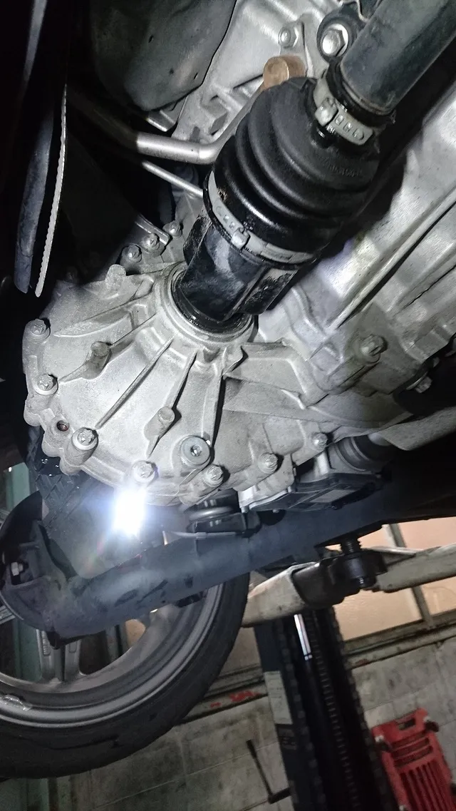 ボルボV70 DCT(ダブルクラッチトランスミッション)フルード交換やドライブシャフトブーツ交換等、他点検整備作業です。