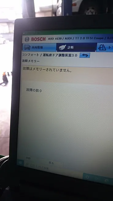 半田市 アウディTTクーペ(8JBWA)ドアアクチュエーター不良交換、ハンドル・パドルSW不良交換 Bosch Car Service 巽自動車