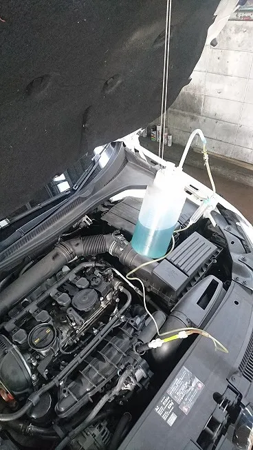 施工後はしっかり残溶剤を残さないようレーシングしまして、診断機に繋ぎ、不要なエラーが入っていないかのチェックもおこないます。