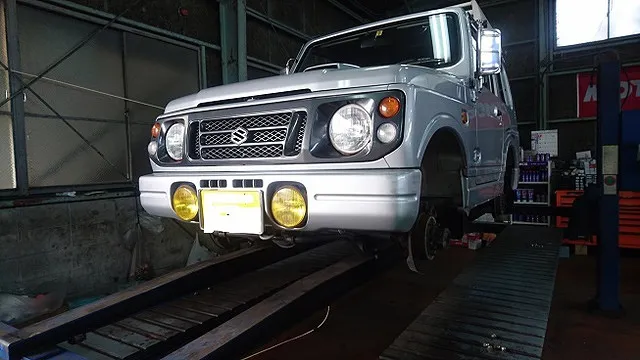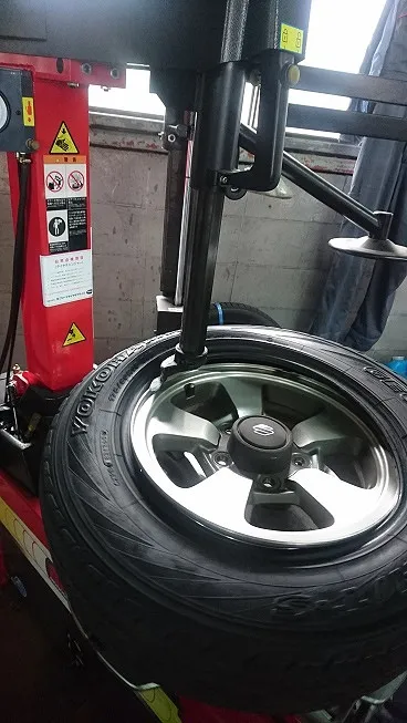 初めてのご入庫頂きましたスズキのジムニーです。タイヤのお持込交換ご希望です。