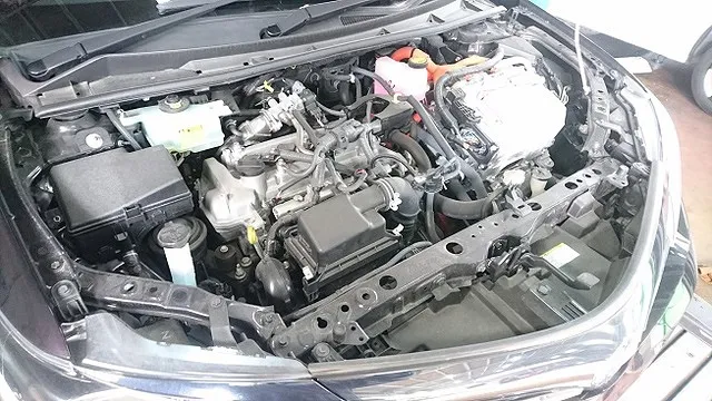 エンジンオイル交換やら簡易点検でご入庫頂きましたトヨタ・カローラフィルダーHV車(1NZ-1LM)です。