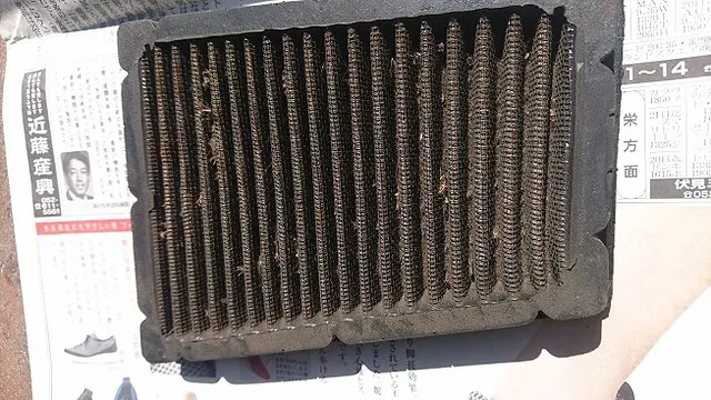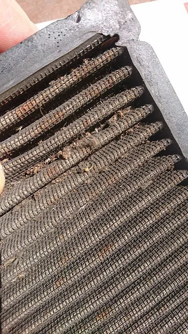 上記の写真のエアクリーナーの状態では正常な吸入空気の計算など容易ではなく、それ自体が不調の原因に、そして、綺麗な空気をせっかく取り込んでもこの汚れたフィルターを通過することにより汚れ自動車の内燃機関を不調にもしてしまう恐れが多分にございます。