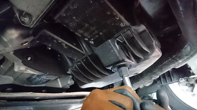 早速、オイルパン(樹脂製)よりドレンボルトを外して排出致しますと