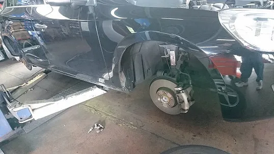 トヨタ・プリウスα(ZVW41)ブレーキ整備作業 ブレーキディスクローター交換&研磨作業です。