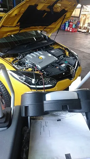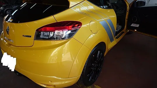 半田市 ルノー・メガーヌRS 外装修理後のタイヤ(ミシュランPS4)取替とボッシュエアコンガス充填&クリーニング作業等。 Bosch Car Service 巽自動車