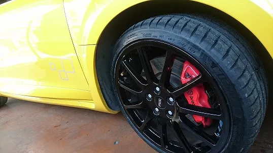 19インチ、35扁平のサイズでは専用特殊アーム装備のタイヤチェンジャーを用いないと交換は困難を極ます。