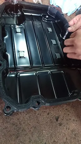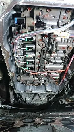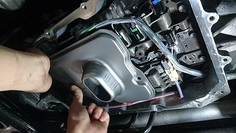 ATFを抜き出し、オイルパン脱着、ATストレーナー脱着致します。