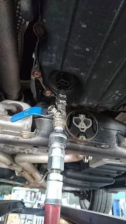 別の診断機に接続しまして温度管理調整の元、最終油量を確定いたします。