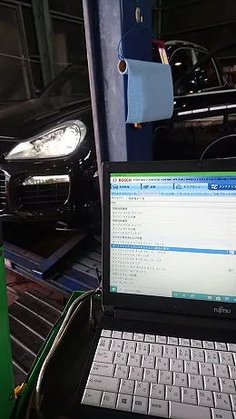 半田市 ポルシェ・カイエン ターボS オートマフルード(ATF)&ストレーナー、PKセット交換、調整作業 Bosch Car Service 巽自動車