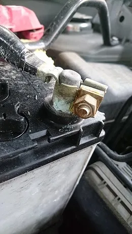 御覧の通り気化した酸化物質がバッテリー回りのステーなどを腐食させています。