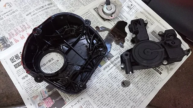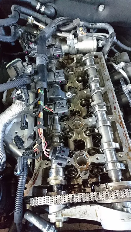 こちらのお写真は作業修理後ですがアッパーカバー背面部もオイル漏れが酷く汚れがかなりのものでした・・