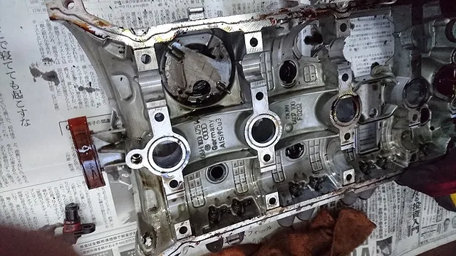 半田市 アウディ・AUDI A5クアトロ エンジンオイル漏れ修理 愛知県半田市より Bosch Car Service 巽自動車