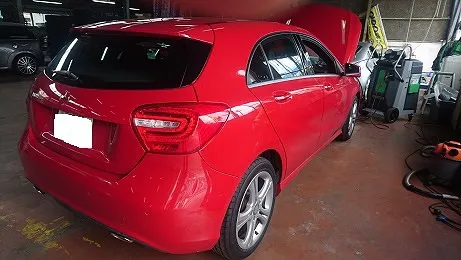半田市 メルセデス・ベンツA180 ボッシュ・エアコンクリーニング&診断整備 Bosch Car Service 巽自動車
