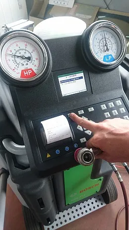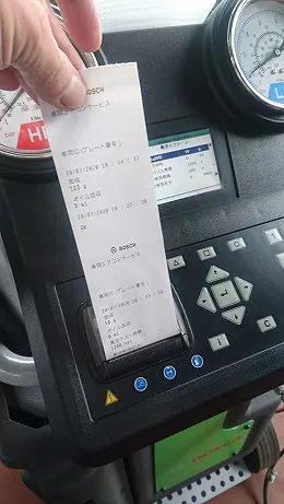 新たにボッシュ自動車エアコンクリーニング充填機器を用いてクリーニングからの機密テストなど行い、そのお車に合ったフロンガス量を充填いたします。
