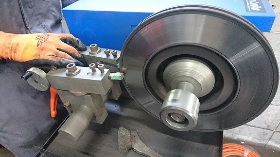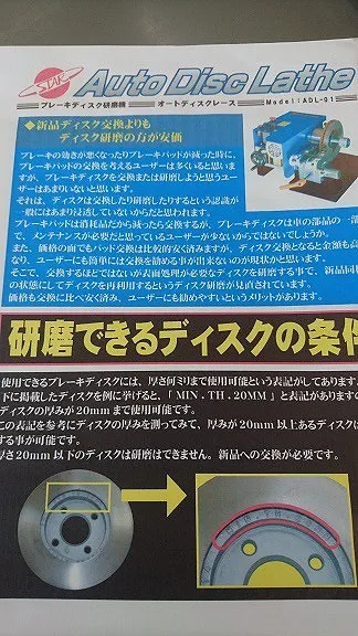自動車専用ディスクローター研磨機器を用いて研磨・調整を行います。