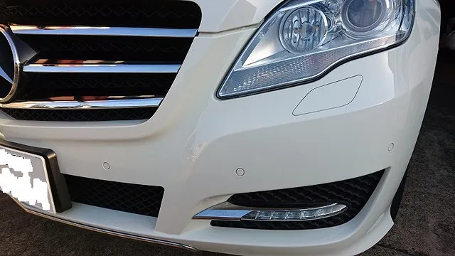 フロントバンパー修理依頼のメルセデスR350にご入庫頂きました。