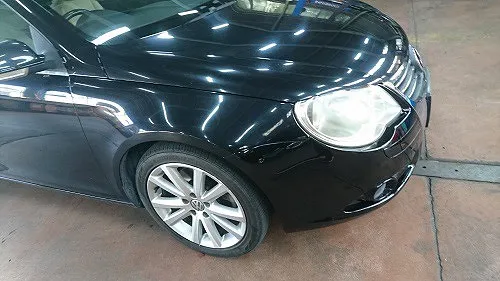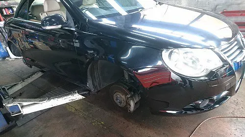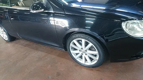 VW・EOS 事故保険修理でご入庫頂き、外装修理完成後、お客様がお持込タイヤ交換を希望され、それら作業を行わせて頂きました。