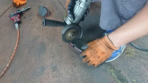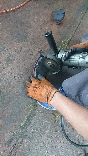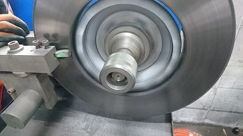 見た目、明らかに荒れている表面という感じではありませんがディスクローター研磨機にて表面を一皮剥いてみましょう。
