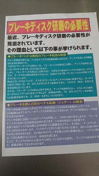 当方でもブレーキパッド交換のみ(ディスクローターを同時交換しない)やネット販売の格安部品、低ダストブレーキパッドなどの使用では鳴き、振れ(ジャダー等)発生する可能性がある事を申し伝えてからの作業を行います。