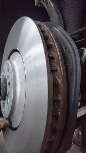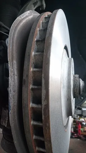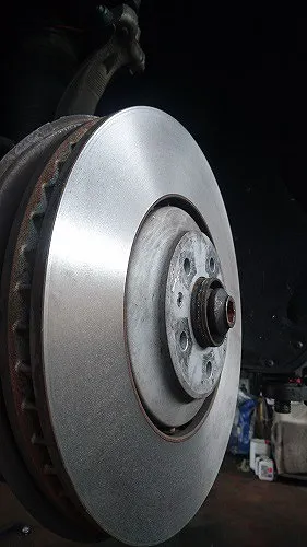 また、当然ですが最低厚みを下回る厚さにしか削れないと想定されるディスクローターは研磨作業は行えません。輸入車の場合ですと純正相当のブレーキパッドの交換時期まで使われたならそのディスクローターは研磨&再利用は厳しいとお考え頂いて正しいかと思われます。