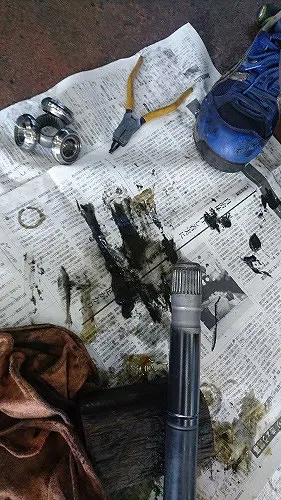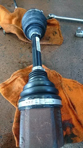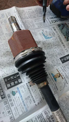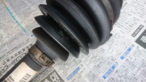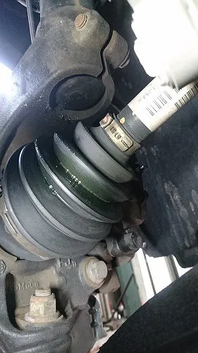 お客様のご了解の元、破れたドライブシャフトブーツの交換へ